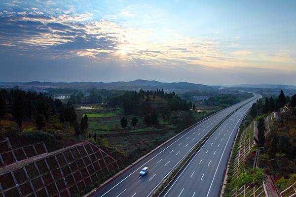 2013年12月25日,我国首条低碳环保高速公路——重庆至成都高速公路重庆段建成通车。这是12月9日拍摄的车辆在渝蓉高速重庆大足段行驶。这条公路仅采用废旧轮胎来生产橡胶沥青路面一项,就使有害气体沥青烟的排放减少90%,减少温室气体排放近50%。(新华社发)