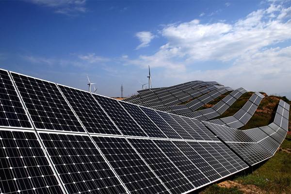 这是2015年9月25日拍摄的河北张家口市宣化县的风能光能互补发电场。(新华社记者杨世尧摄)