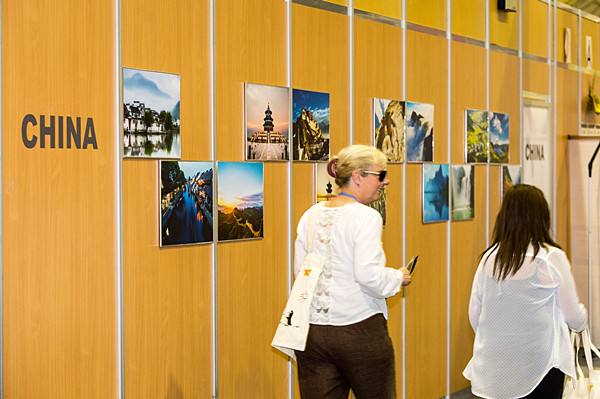 2014年12月3日,在秘鲁利马气候大会上,与会人员经过“中国角”外的照片墙。(新华社记者徐子鉴摄)