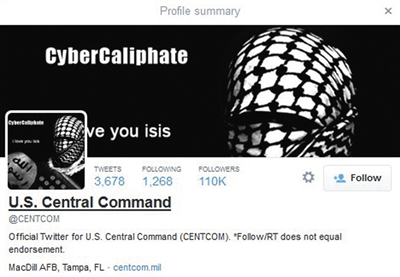 2015年1月12日,美国中央司令部推特账户遭到IS袭击。