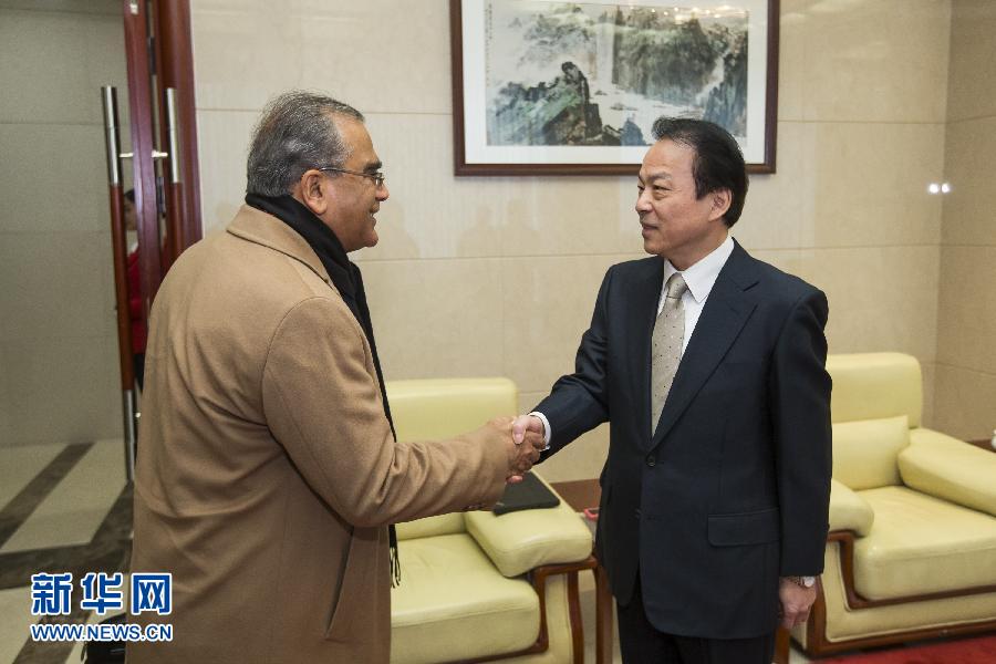 11月30日,新华社总编辑何平在北京会见今日印度媒体集团董事会主席兼总编辑阿伦·普里。 新华社记者 沈伯韩摄