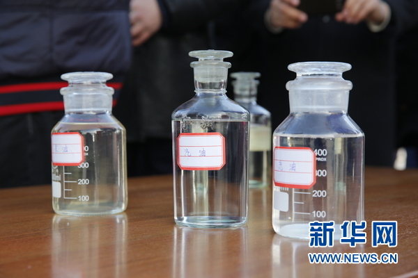 11月27日,托克马克实业炼油厂展示的炼油厂产品。新华社发(罗曼摄)