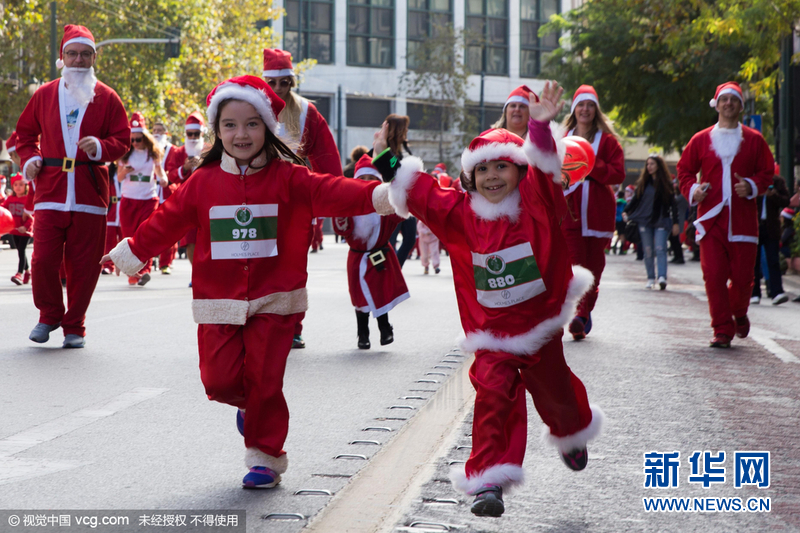 一大波圣诞老人来袭!希腊首都举办圣诞老人赛跑(高清)
