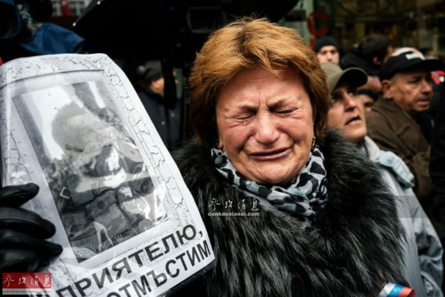 哭泣的俄罗斯民众。