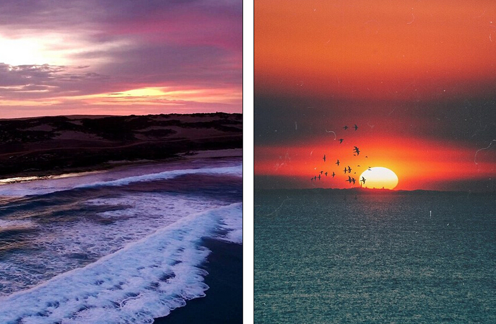 摄影师普利思拍摄的林肯港日落(左)。威廉姆森也拍摄了西澳日落(右)。(网页截图)