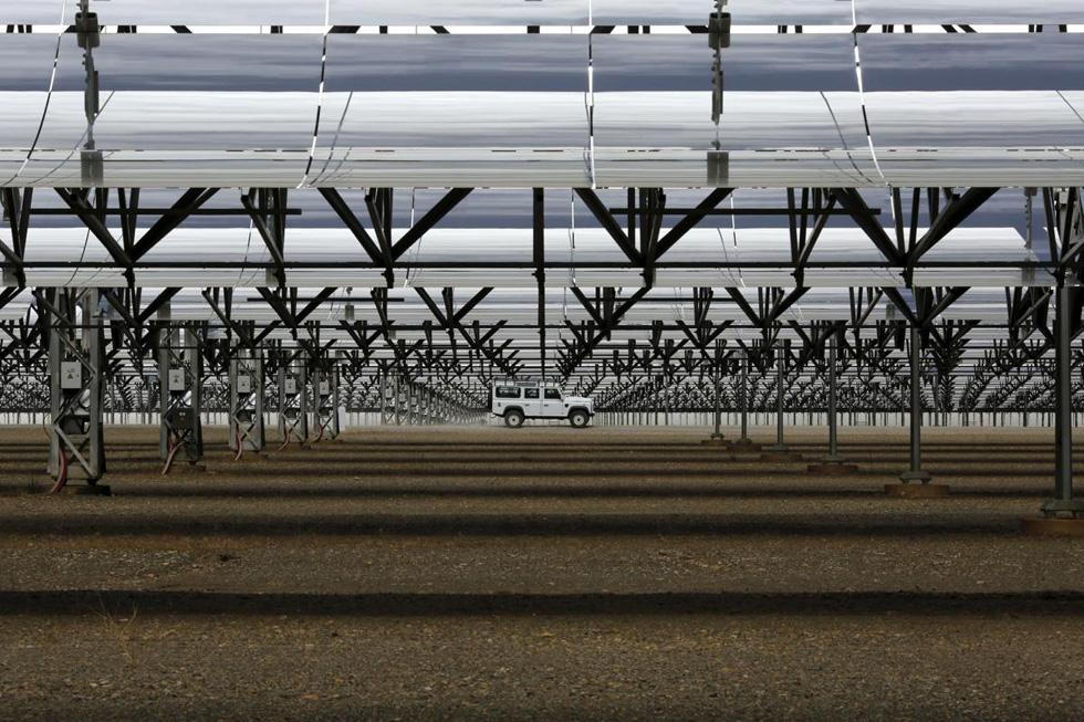 7月1日,这名工人正在开车检查太阳能集热器。(网页截图)