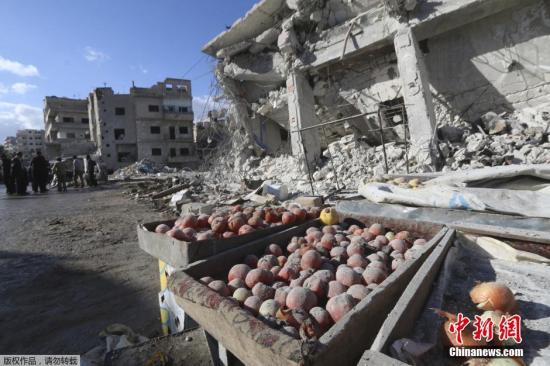 11月29日报道,叙利亚西北部伊德利卜省埃里哈镇一个人口密集的集市遭到空袭,至少40人死亡。集市中的店铺被炸的面目全非。