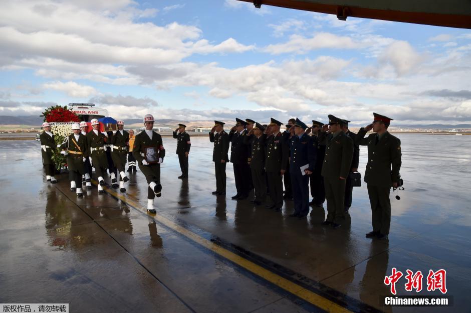 当地时间2015年11月30日,土耳其安卡拉,俄罗斯被土耳其击中战机的飞行员遗体抵至艾森波加机场,准备运往俄罗斯。土耳其当局此前称,叙利亚方面将遇难俄飞行员的遗体转交给了土耳其,土方将把遗体转交俄方。