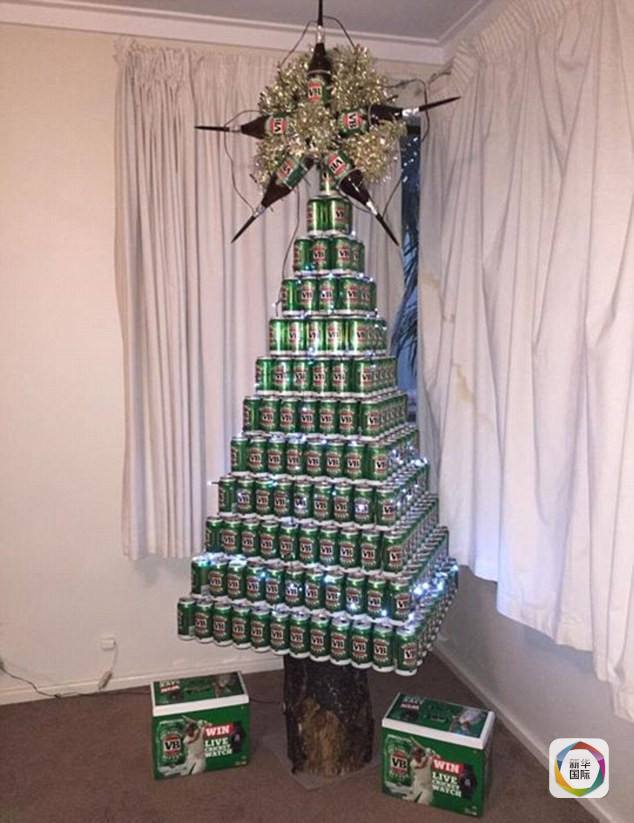 据新华国际客户端了解,去年,澳大利亚一家啤酒公司发起了建造“最美圣诞树”的比赛,倡导人们用啤酒罐搭建圣诞树。今年,网友们延续去年的欢乐气氛,在社交网站上贴出自家搭建的另类圣诞树。