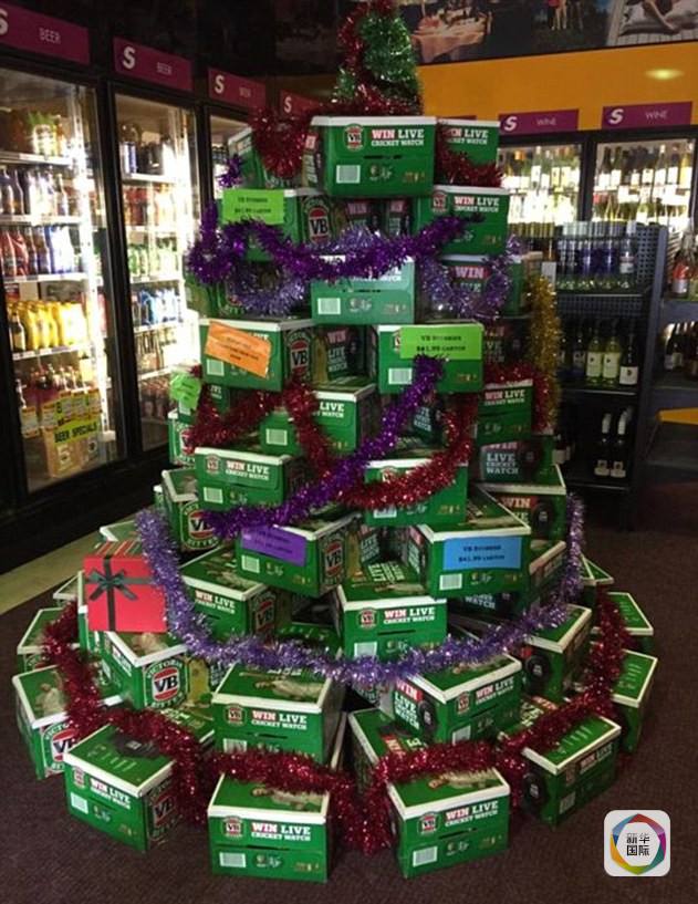 英国媒体报道说,很多人把亮闪闪的绿色啤酒罐堆起来或粘起来,或者把一个啤酒罐剪成圣诞树的形状,还有的选用汽车轮胎,上面装饰上星星和彩饰。一家“财大气粗”的商店则用啤酒箱在店中垒砌高高的纸箱圣诞树。
