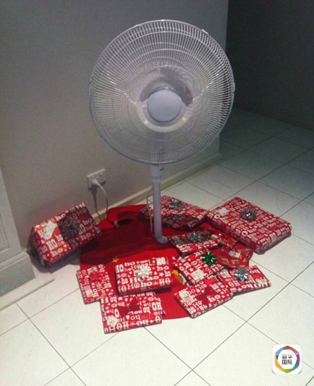 最奇葩的是一家没有空调的家庭,干脆把家里的电风扇当作了圣诞树,下面放满礼物,让这个夏日圣诞节多一丝丝清凉。(记者宋盈,编辑贾小华,新华国际客户端报道)