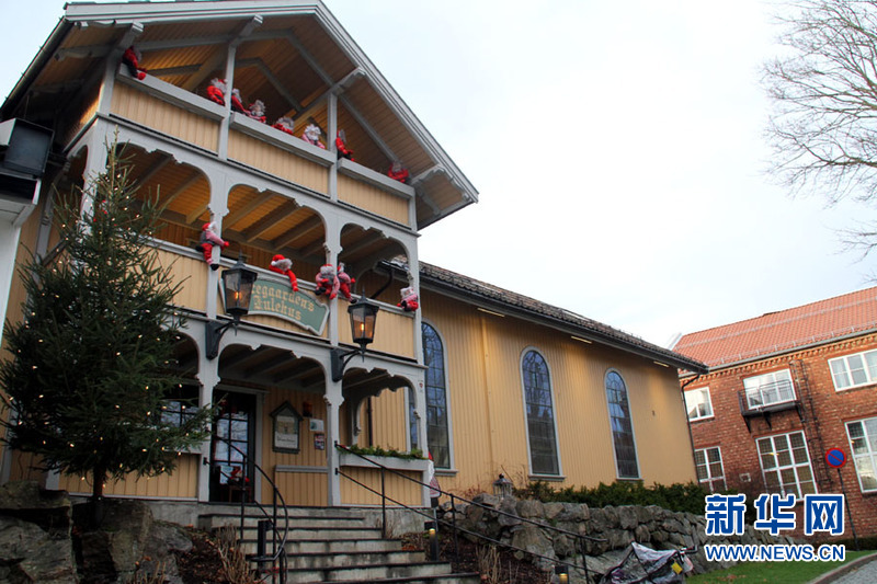 11月29日拍摄的挪威圣诞屋,圣诞屋位于德勒巴克镇中心,全年无休。人口约13000多人的德勒巴克(Drobak)位于首都奥斯陆以南约35公里,是奥斯陆峡湾边上的一个美丽宁静的小镇。据德勒巴克官方网站介绍:“德勒巴克人都相信,圣诞老人在好久好久以前诞生于该镇北部峡湾边上的一块大岩石下”,从而这里成为了挪威的圣诞小镇。新华社记者张淑惠摄