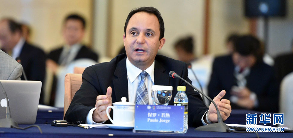12月1日,首届金砖国家媒体峰会在京召开。图为《巴西利亚邮报》经济版副主编、总编辑特别代表保罗·席尔瓦·平托·若热发言。新华网 郭小天 摄