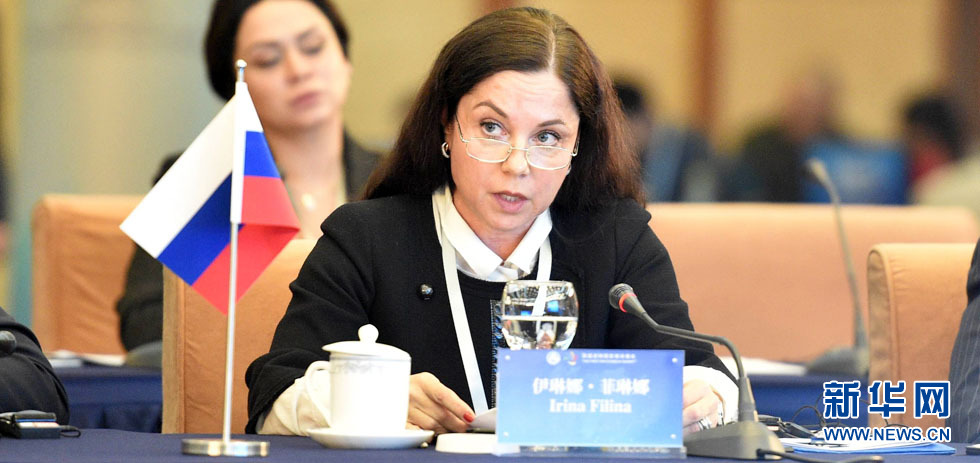 12月1日,首届金砖国家媒体峰会在京召开。图为俄罗斯全国广播电视公司副总经理伊琳娜·菲琳娜发言。新华网 郭小天 摄