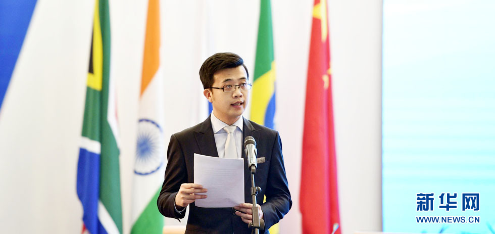 工作人员宣读《金砖国家媒体峰会北京宣言》