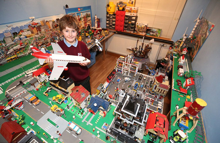 英国格洛斯特郡的小型巴士司机鲁塞尔 威尔科克斯(Russell Wilcox)与儿子路易斯(Lewis)用了五年时间,花了将近1000英镑(约合人民币9460元)在家中的闲置房间里用积木搭建起了一座现实版的“乐高小城”。
