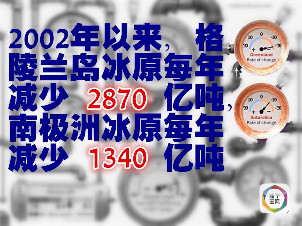 科学家认定,由于气温和海水温度升高的双重影响,分别位于格陵兰岛和南极洲的地球两大冰原正在消失。美国国家航空航天局喷气推进实验室收集的卫星数据显示,2002年以来,格陵兰岛冰原每年减少2870亿吨,南极洲冰原每年减少1340亿吨。
