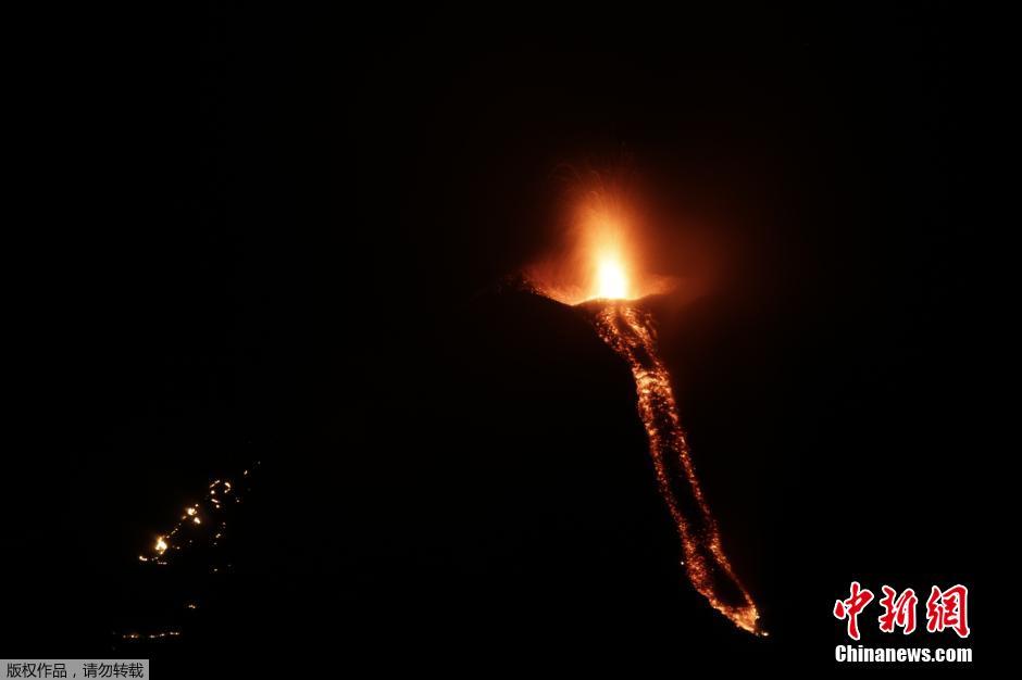 尼加拉瓜莫莫通博火山喷发 红色岩浆涌出(高清)