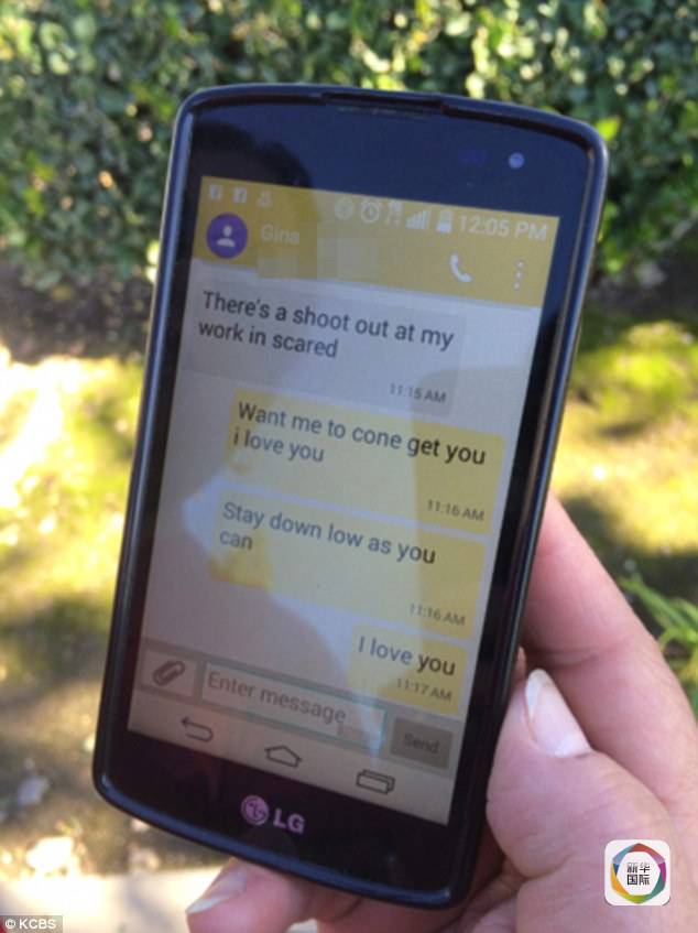 案发时,“内陆地区中心”残障康复中心员工吉娜给姐姐发送短信说:“我班儿上发生交火了”。对方回复到:“需要我过来吗?我爱你……趴下,尽可能地低点儿……爱你。”