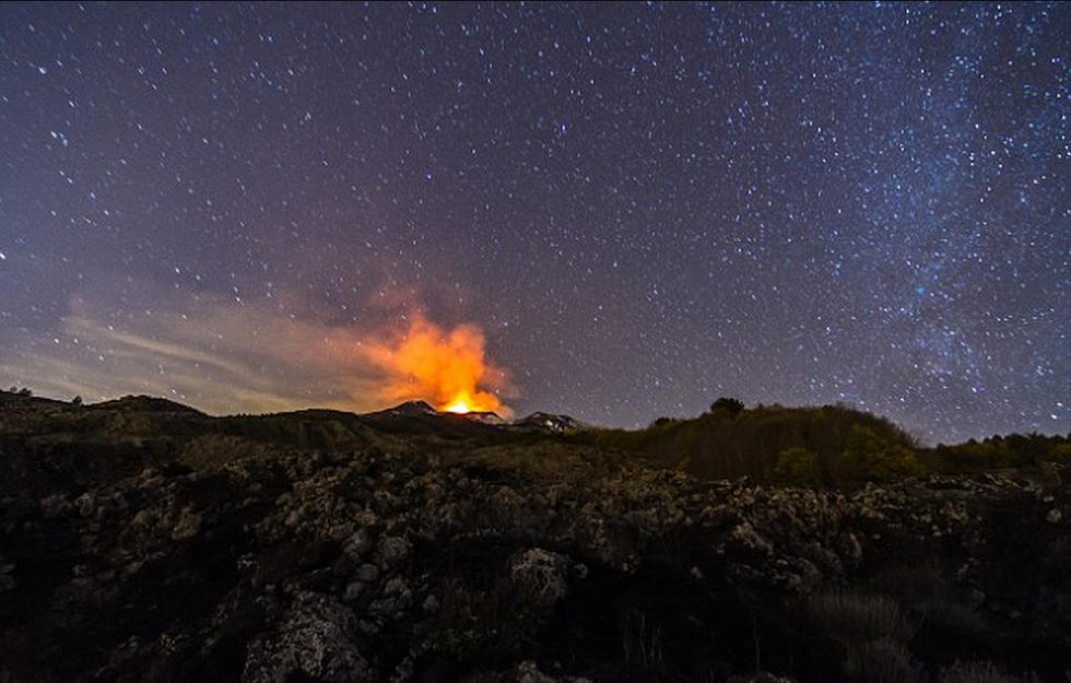 意大利火山喷发奇景 烟雾冲破天际(高清组图)