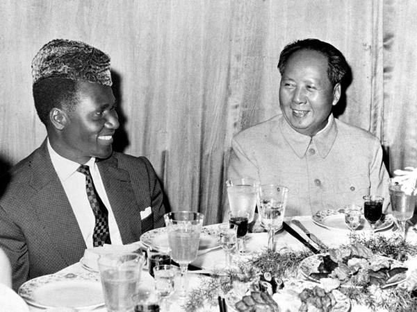 图为1960年9月12日晚,中共中央主席毛泽东设宴招待几内亚共和国总统塞古·杜尔。