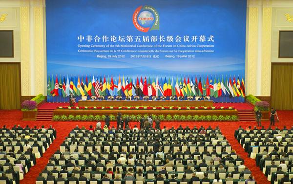 图为2012年7月19日,中非合作论坛第五届部长级会议在北京举行的开幕式。(新华社记者王晔摄)