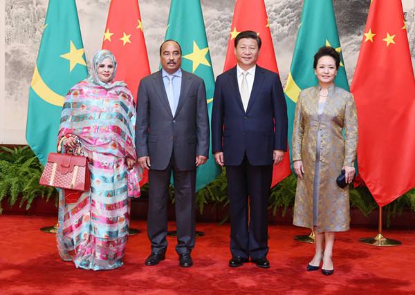 2015年9月14日,习近平举行仪式欢迎毛里塔尼亚总统阿齐兹访华。这是习近平主席和夫人彭丽媛在人民大会堂同阿齐兹总统夫妇合影。(新华社记者姚大伟摄)
