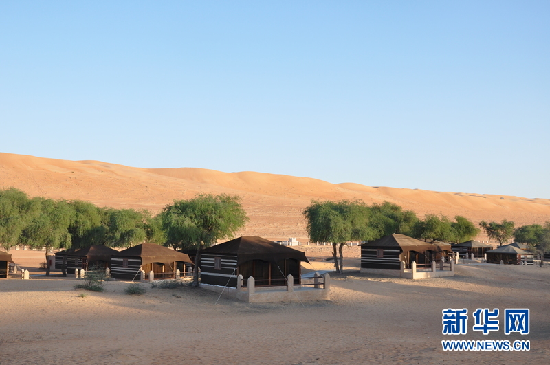 沃希拜沙漠地处阿曼东部,其南北长180公里,东西宽80公里,总面积达1.25万平方公里。近年来,这里的沙漠旅游日渐兴旺,不少外国游客慕名而来。在沃希拜沙漠,人们白天可以欣赏沙漠风光、体验驾车冲沙刺激,傍晚观看大漠落日,夜晚可选择沙漠露营,别有情趣。新华社记者孙磊摄
