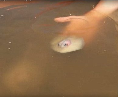 黄貂鱼是种可“胎生”的鱼类,它们每次最多同时孕育13条小生命。米勒·威尔逊(音译,Miller Wilson)在红树林小溪偶遇一条正要临产的巨大黄貂鱼,并拍下自己为其接生的视频,上传视频网站。