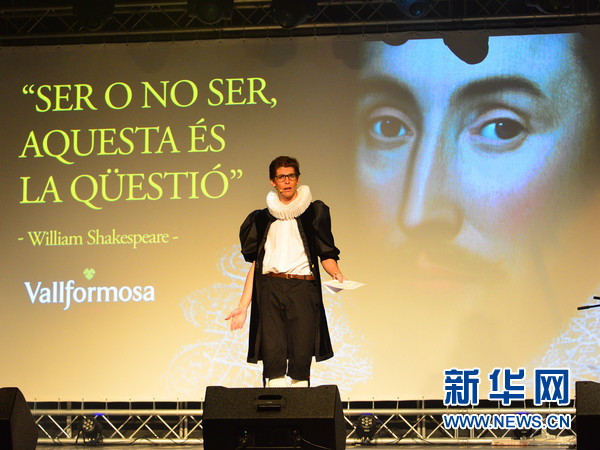 演员在街头舞台上表演莎翁戏剧。新华社发(贺耀龙摄)