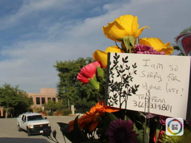 12月3日,在美国加利福尼亚州南部圣贝纳迪诺市,当地居民在枪击案案发现场摆放鲜花纪念逝者。新华社记者杨磊摄