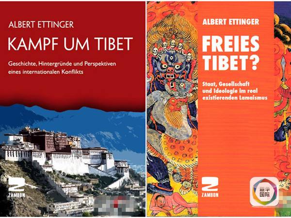 图为卢森堡学者艾廷格所著《自由西藏?》(右)和《围绕西藏的斗争》两本关于西藏的德文书籍的封面。(源自网络)