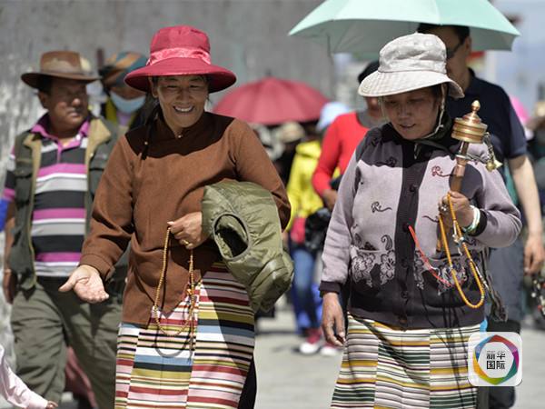 图为6月2日,西藏迎来“萨嘎达瓦”宗教活动高峰日,信教群众手持转经筒转布达拉宫。(新华社记者刘东君摄)