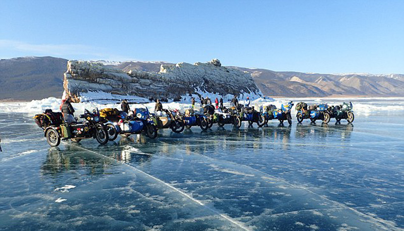 据英国《每日邮报》12月3日报道,澳大利亚北部达尔文市的一个四人重型机车队今年3月完成了一项壮举,花费2周时间骑行2000公里,穿越世界最大冰湖——贝加尔湖。