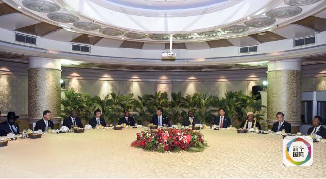 新华网北京12月5日电 12月4日,国家主席习近平在约翰内斯堡集体会见13位非洲国家领导人。(新华社记者谢环驰摄)