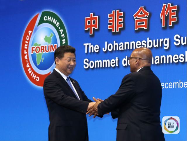 12月4日,国家主席习近平出席中非合作论坛约翰内斯堡峰会开幕式并发表致辞。这是南非总统祖马迎接习近平。(新华社记者庞兴雷摄)