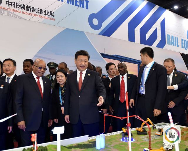 12月4日,国家主席习近平在约翰内斯堡同南非总统祖马,非盟轮值主席、津巴布韦总统穆加贝共同出席中非装备制造业展开幕式并为展览剪彩。(新华社记者李涛摄)