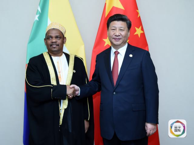 12月4日,国家主席习近平在约翰内斯堡会见科摩罗总统伊基利卢。(新华社记者张铎摄)