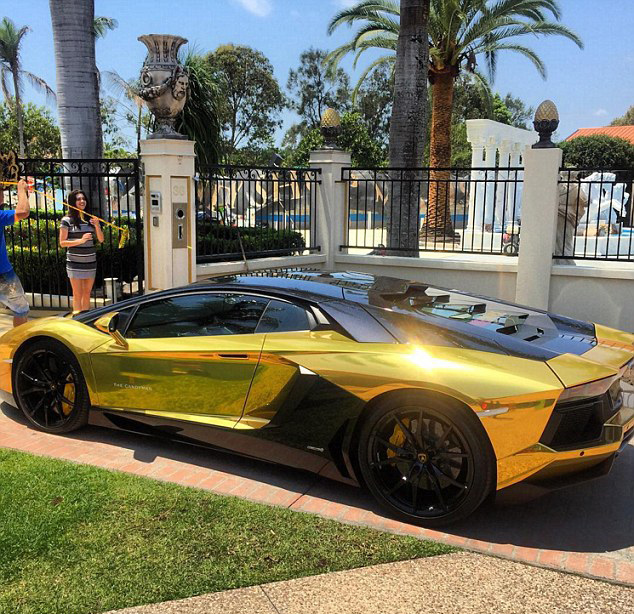 【环球网综合报道】据英国《每日邮报》12月3日报道,近日,来自澳大利亚的烟草大亨特拉弗斯 贝农在社交网站Instagram上晒出了他的“新宠”座驾,一辆镀金的兰博基尼超级跑车,赚足眼球。在这辆据称是“世上最昂贵”的跑车后窗上,他还贴上了他专属的烟草产业标志。