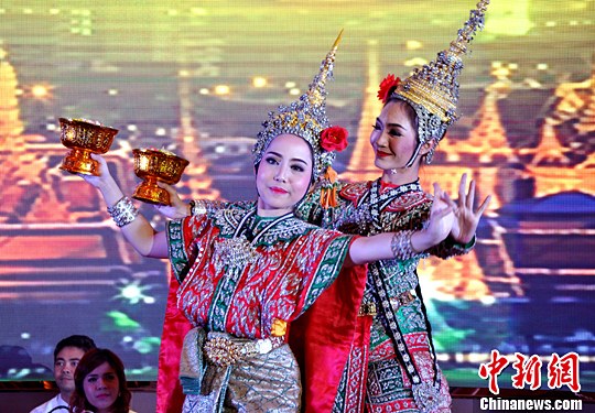 泰国驻南宁总领事馆庆祝泰国国王88华诞,图为泰国舞蹈表演现场。中新社记者 黄艳梅 摄