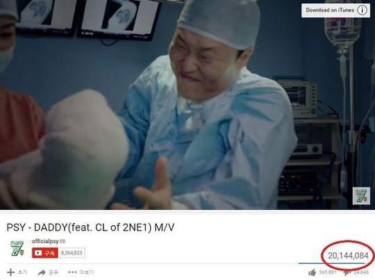 据韩国《亚洲经济》报道,4日,鸟叔PSY专辑《7辑PSY达》主打歌之一《Daddy》的MV在全球最大视频网YouTube的点击率突破2千万次,这再一次证明了鸟叔在全球的超高人气。