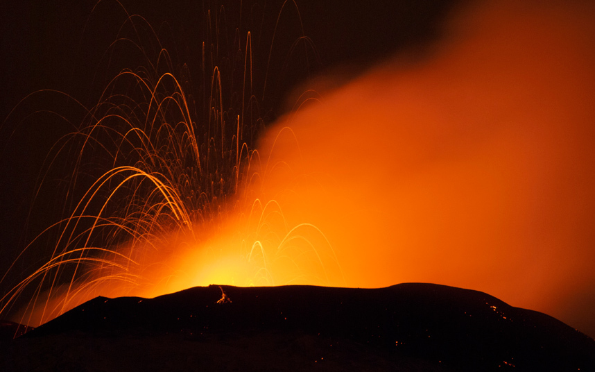 意大利西西里岛埃特纳火山喷发埃特纳火山喷发状况十分活跃,自2007年以来发生20余次喷发,累计造成近100万人伤亡。