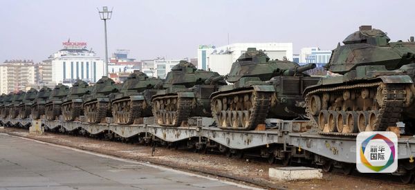 11月27日,土耳其东南部加济安泰普市车站,从东部运来的坦克。(图片来源:新华/美联)