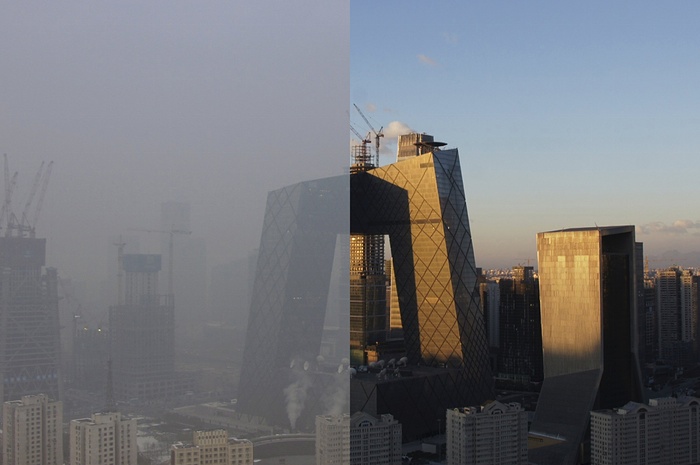 英媒发布北京雾霾和晴天对比照 反差巨大(组图)