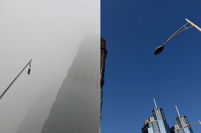 英媒发布北京雾霾和晴天对比照 反差巨大(组图)
