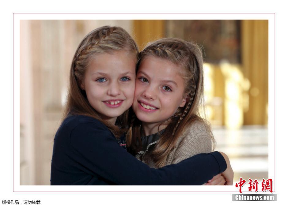 西班牙王室发布圣诞贺卡 两位小公主“独当一面”(图)