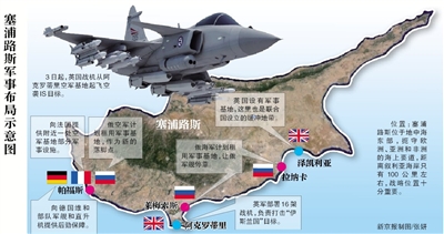 目前,塞浦路斯向法国提供西南部港口城市帕福斯附近一处空军基地的部分军事设施,同时向在黎巴嫩执行维和任务的德国军舰和直升机提供后勤保障。英国在塞浦路斯拥有两处军事基地,其中阿克罗蒂里空军基地部署有16架战机,负责对叙利亚和伊拉克境内的“伊斯兰国”目标实施打击。这里也是北约军事电子监控系统的重要枢纽。