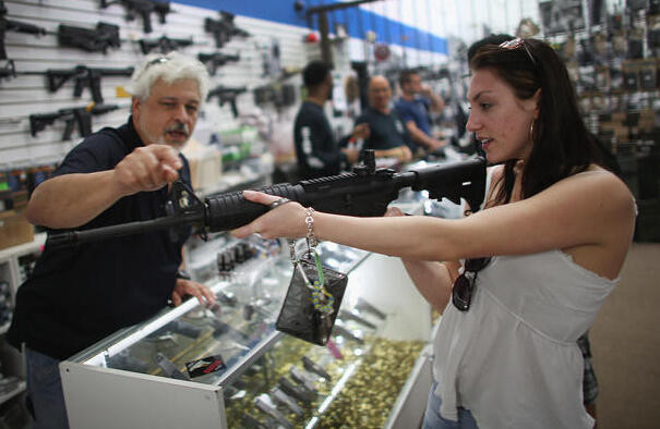 随着近日加州又一起影响恶劣的枪击案掀起的舆论风潮,美国对于枪支管理和法律条文的讨论再次浮出水面。据哥伦比亚广播新闻网站数据,美国人均枪支拥有量排名前三十的州也非常清晰的摆在人们面前。排在第三十的佛罗里达州,平均每一千人拥有10.2支枪,图中是佛罗里达州庞帕诺比奇海岸一个枪支店向顾客展示商品。