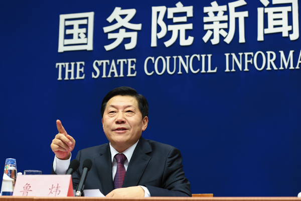 国务院新闻办公室2015年12月9日(星期三)上午10时举行新闻发布会,请国家互联网信息办公室和浙江省负责同志介绍第二届世界互联网大会有关情况及筹备工作进展,并答记者问。图为国家互联网信息办公室主任鲁炜回答记者问题。杨同贺 摄