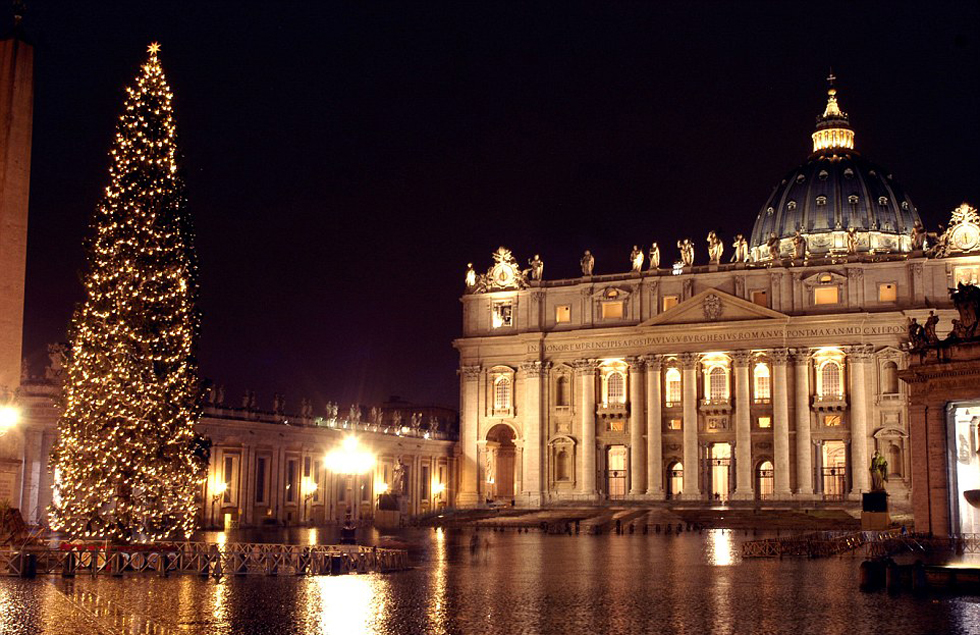 梵蒂冈圣彼得广场圣诞树每年都会按时点亮。(网页截图)